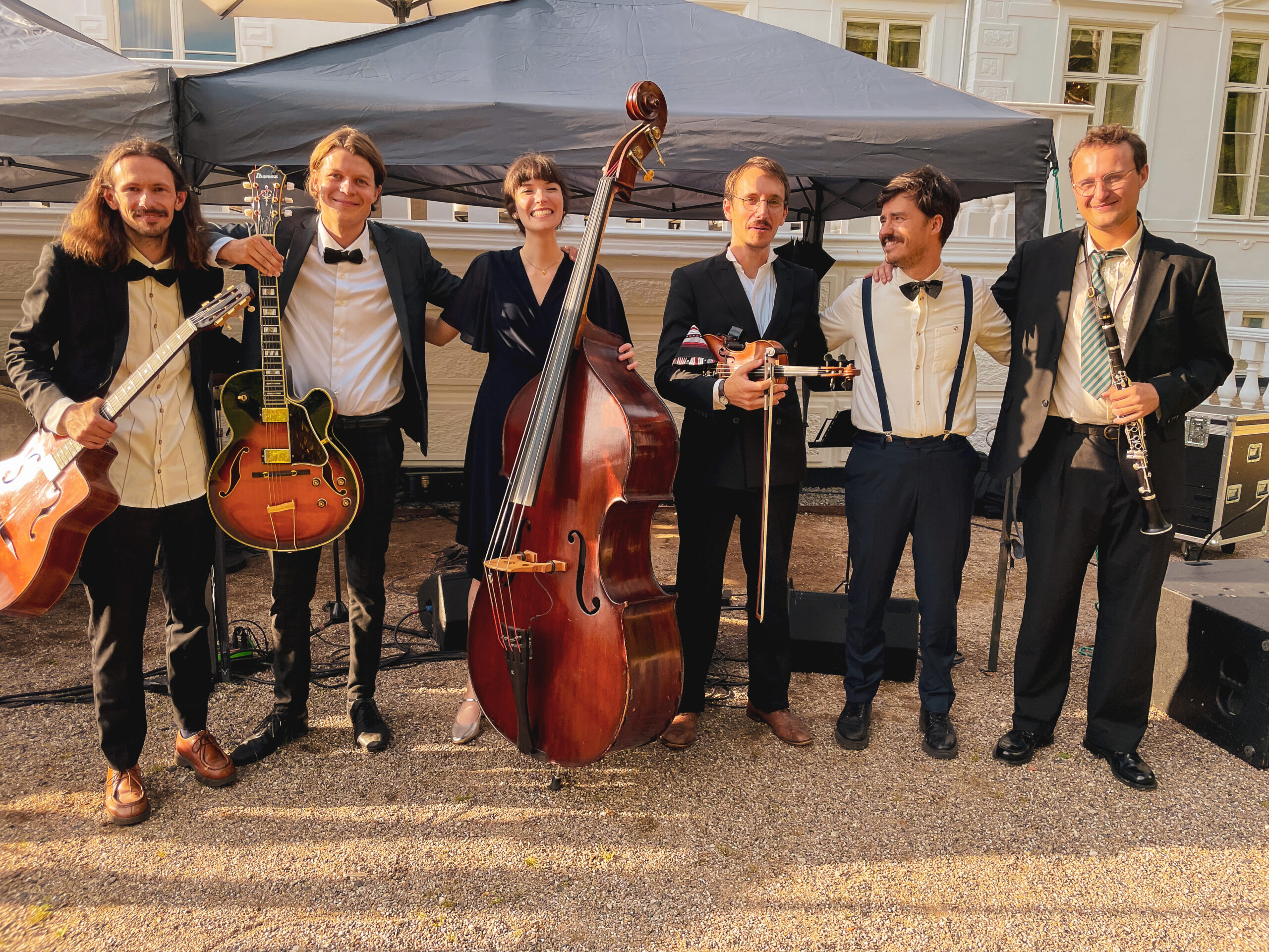 Le Sextet Acoustique er sammensat af professionelle musikere med stor erfaring fra både europæiske jazzfestivaler, teaterproduktioner og intime klubjobs. Bandet navigerer ubesværet mellem de stringente manouche-rytmer, vildskaben i klarinetten og violinens lyrik, så publikum får et levende og nærværende musikalsk fundament.