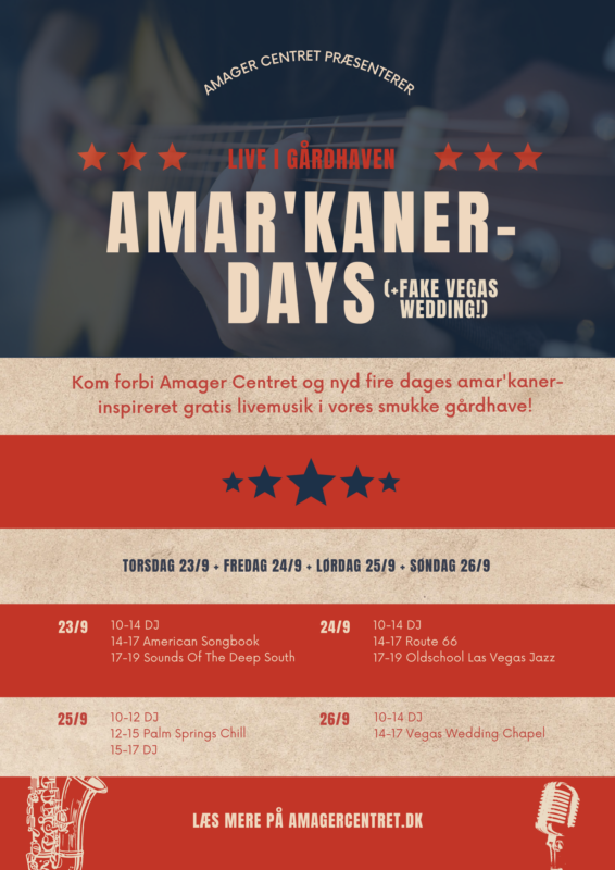 In collaboration with Amager Centret, we designed an 'Amar'kaner-days' day with a focus on American music, including music for a wedding ceremony in the centre itself.
