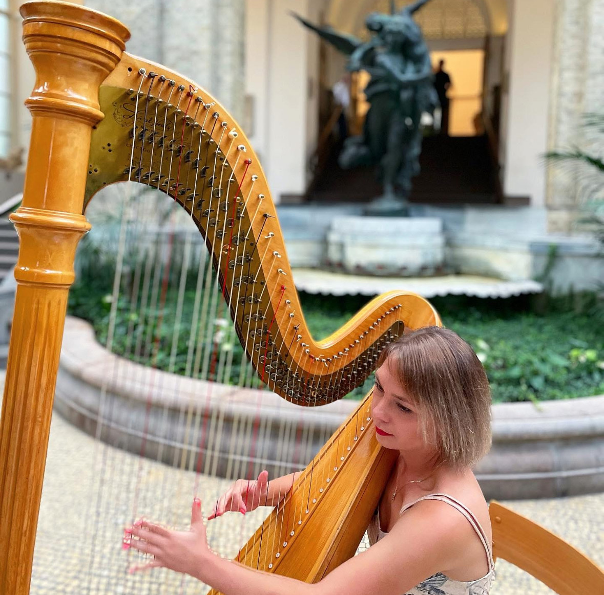 Kontakta oss för att boka Olga och ta ditt evenemang till en helt ny nivå med harpans magiska musik,